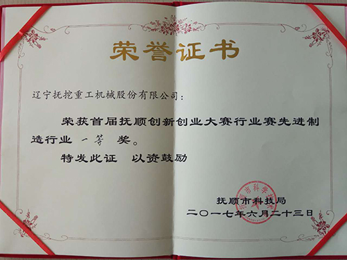 2017年6月,撫挖重工第二代CMD850履帶式TRD成槽機(jī)產(chǎn)品榮獲撫順市首屆“雙創(chuàng)大賽”一等獎(jiǎng)